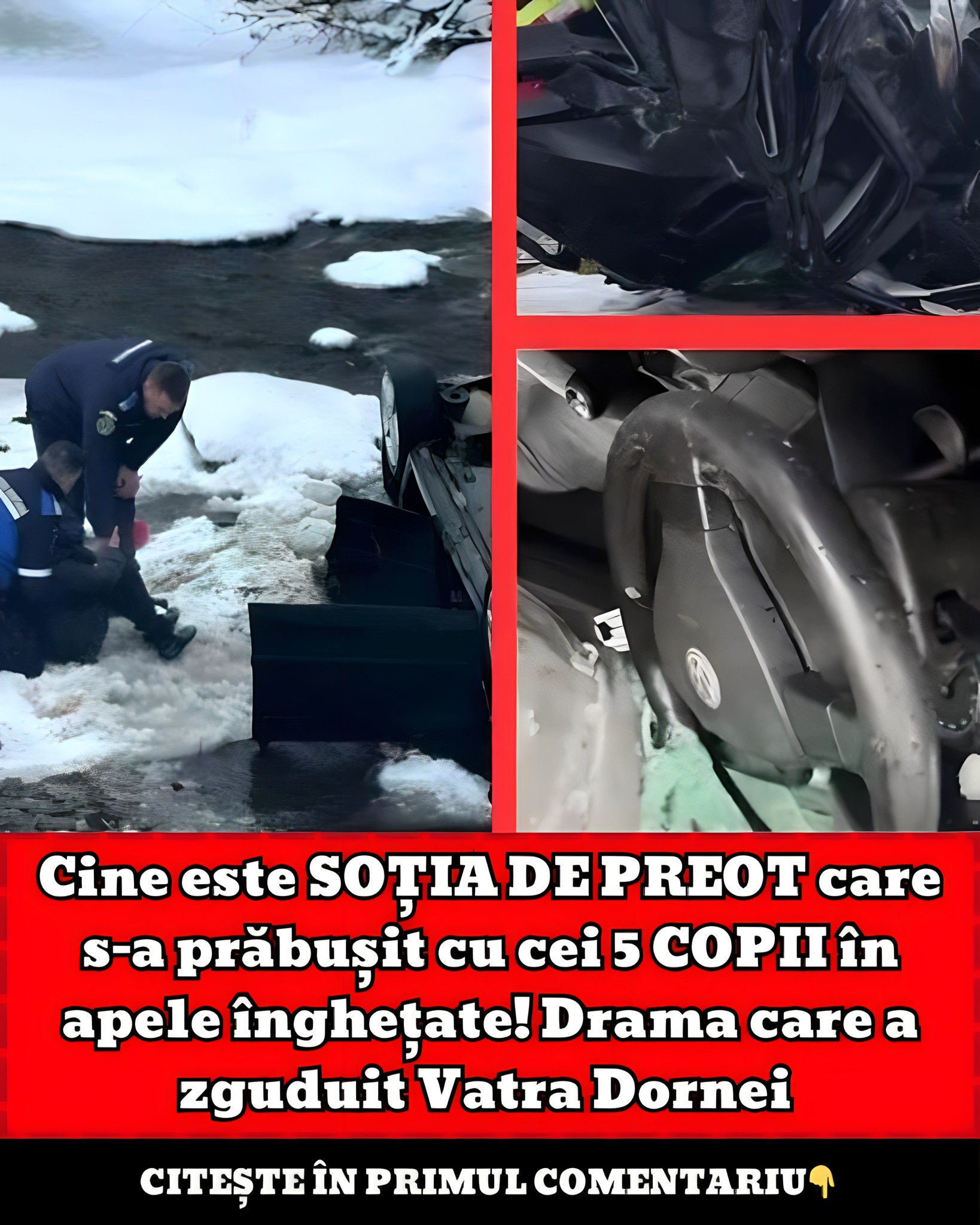 În Vatra Dornei, vestea s-a răspândit repede: o mamă, soție de preot, și cei cinci copii au fost prinși într-un accident care a făcut dintr-o simplă traversare a unui pod o luptă cu frigul și cu timpul. Fiecare detaliu al locului — curba, parapetul, înălțimea, râul — a contat.